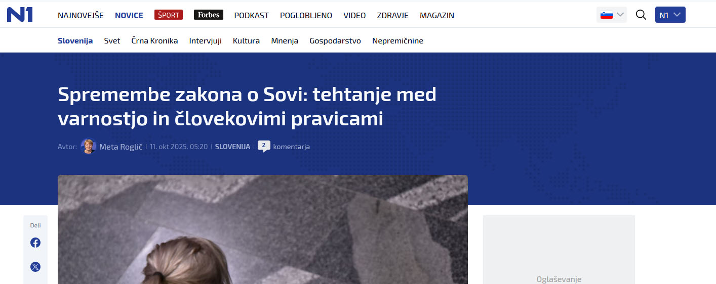 Za portal N1 smo komentirali predlog sprememb zakona o Sovi. Opozorili smo na problem večanja pooblastil, kot sta legalizacija IMSI-lovilcev in uporaba vohunske programske opreme, ki prinašata resna tveganja za zasebnost državljank in državljanov. Čeprav razumemo potrebo po državni varnosti, menimo, da ne smemo dovoliti, da “lov na kriminalce” postane opravičilo za množične posege v življenje vsakogar izmed nas.