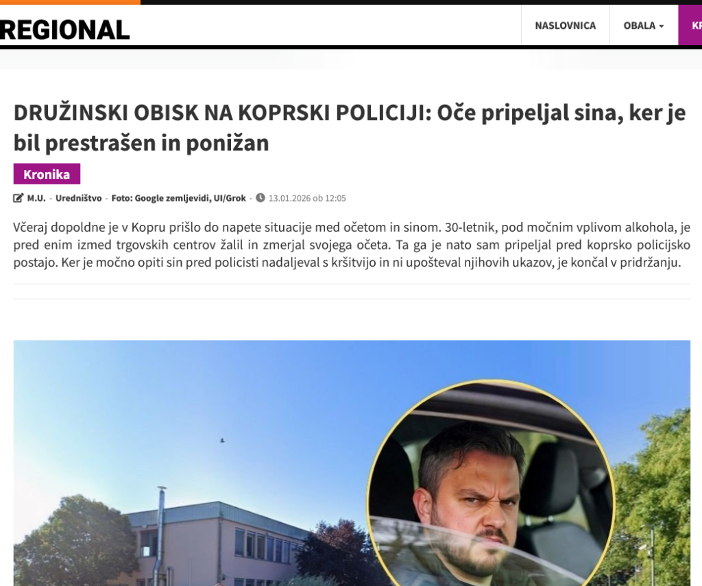 Pri članku o družinskemu nasilju in obisku policijske postaje je orodje generativne umetne inteligence uporabljeno za ustvarjanje slike, na kateri lahko vidimo človeški obraz. Ker gre za članek iz črne kronike lahko bralec hitro napačno domneva, da je na sliki storilec dejanja, ki ga opisuje članek, kar ni res. Vir novice